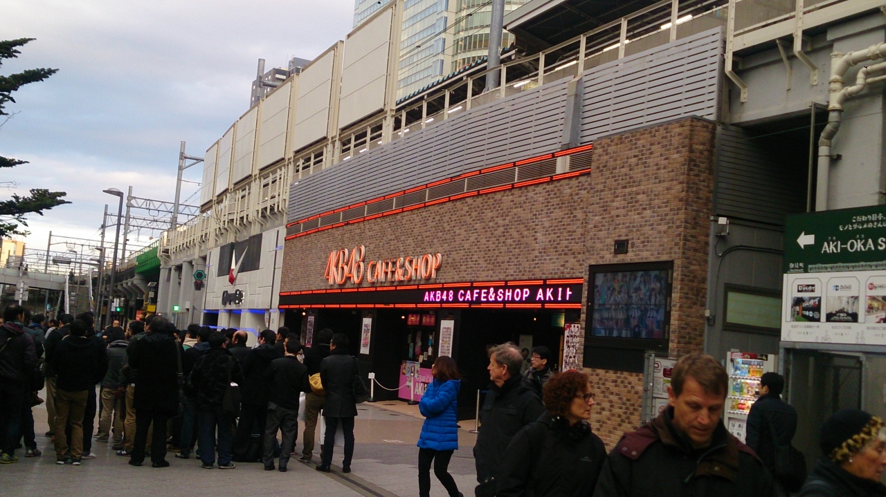 秋葉原駅の電気街口の改札口を出て駅前広場に出ると、山手線と京浜東北線の高架下を利用した店舗として営業しており、どでかい看板でAKB48CAFE&SHOPと電光サインが掲げられており、すごく目立つのですぐに分かります。店内はAKB48のメンバーのグッズが並べられていて、ファンにとっては大変楽しい場所なんだと思います。またカフェも併設されており、関連メニューが展開されていました。自分がお店をのぞいたのは平日の夕方近くだったのでお客さんもチラホラでした。