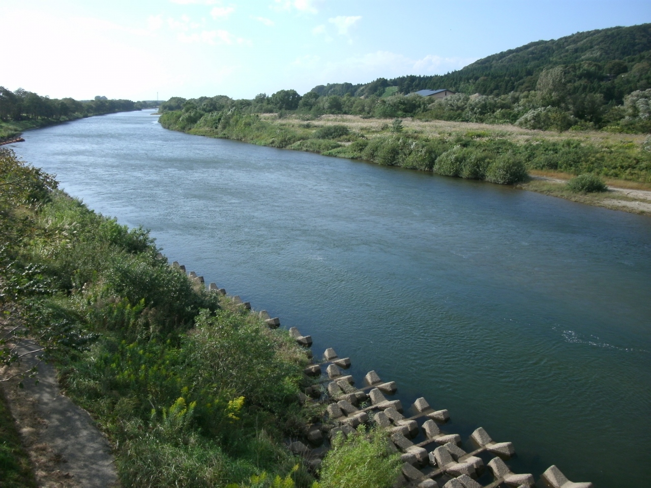 JR村上駅から歩いて10分ほど、三面川の左岸に広がる公園です。ウォーキングコースや花壇などが整備されていますが、特別な遊戯器具などはありません。緑が多い自然豊かな公園です。三面川の風景も綺麗し、イヨボヤ会館に近く、黒塀通りや寺町からも歩いていける距離なので市内観光のついでに立ち寄るのもいいかも。