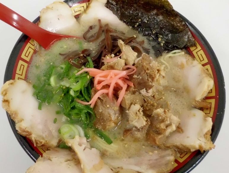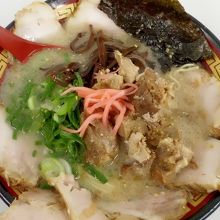 ストレート麺でスープもあまり一口でガツンという感じではないけど食べ進むにつれてとんこつのスープがかなりくる感じです。私はこってりに感じました。チャーシューはたっぷり入っていてとろとろです。にんにく醤油をかければ味の変化も楽しめます。百貨店の催しで出店されていました。