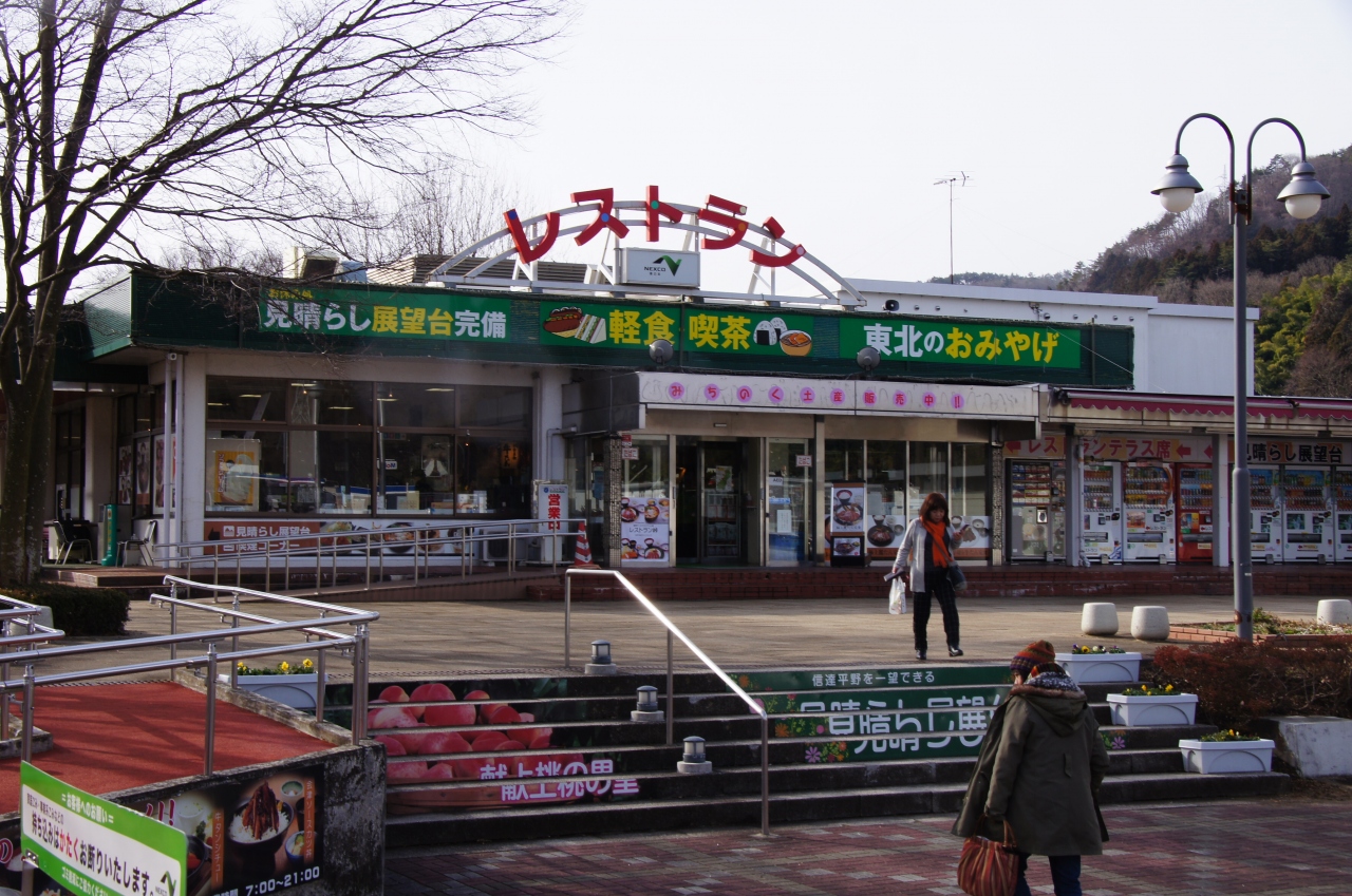 宮城から福島に入って直ぐのサービスエリアです。ほとんど県境の為、宮城と福島の土産を購入可能。レストランでも牛タンや喜多方ラーメンなどが混在しています。