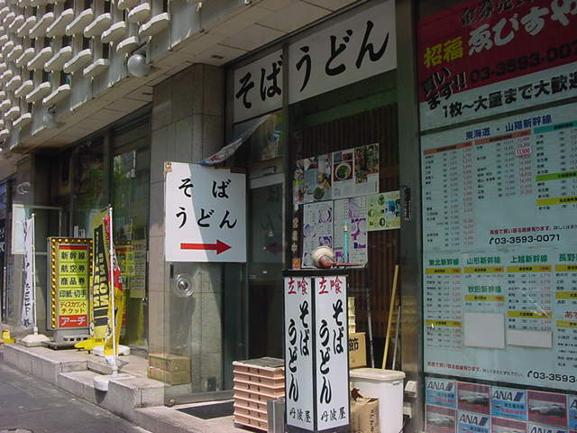 人通りの多い新橋駅前に立地する「ニューしんばしビル」の1Fに入る立ち食いのそば・うどん店。周辺はチケットショップなどが並び、スーツ姿のサラリーマンが目立ちます。トッピングが豊富なので、コロッケやちくわ天など、その日の気分で具を選ぶことができます。