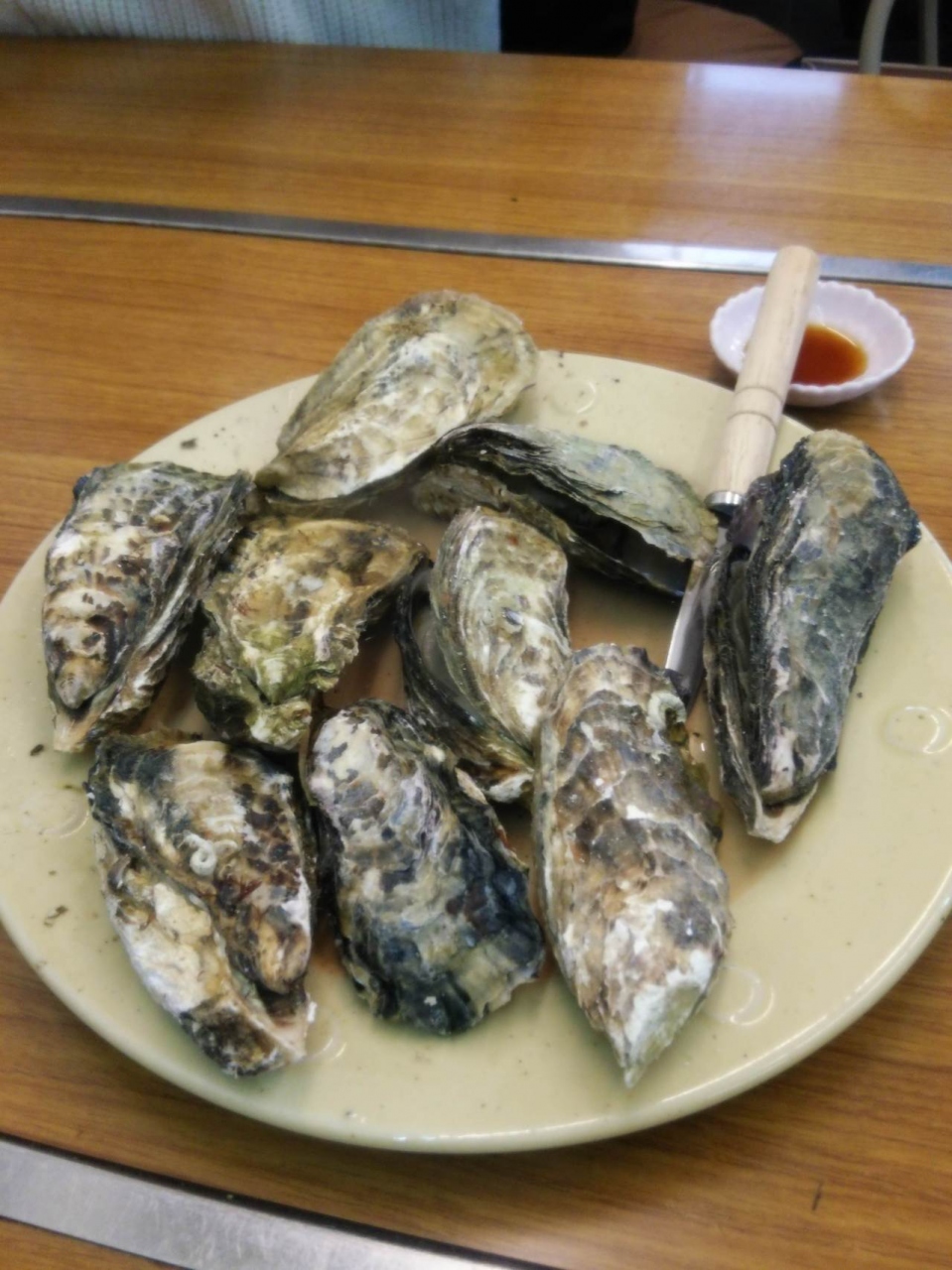頼んだメニューはかきおこと漁師焼きと殻つき蒸しガキ。