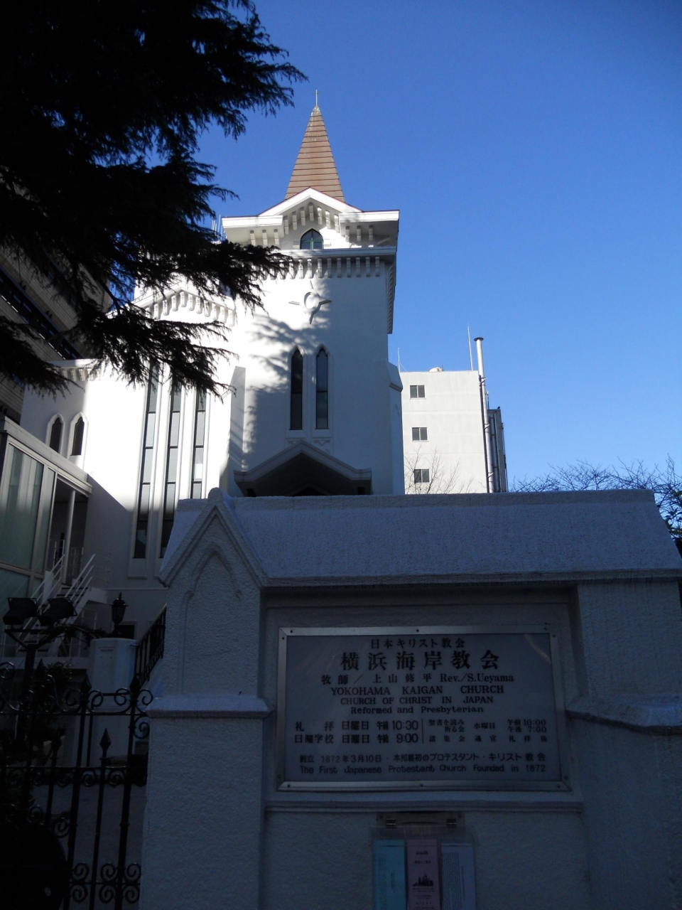 日本で最初にできたプロテスタントですが、焼失後、建て替えを経ての現在の姿のようです。