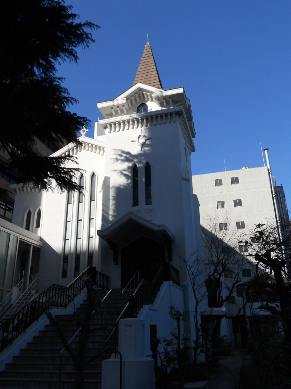 「大桟橋通り」沿いの、「シルクセンター」から少し南に進んだところに建っている白亜の教会です(改修工事後のようでとても綺麗でした)。