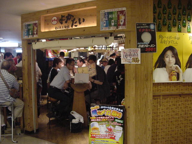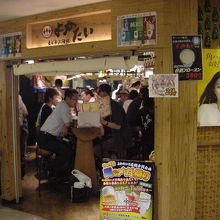 JR博多駅の構内にある「博多デイトス」の1F、ほろよい通りにあるお店。狭い店内に並ぶテーブル席は夕方にはもう一杯。この活気も一緒に味わうお店でしょう。この日のソフトバンクの試合結果をネタに、初対面の人同士が盛り上がれるのも博多の魅力です。