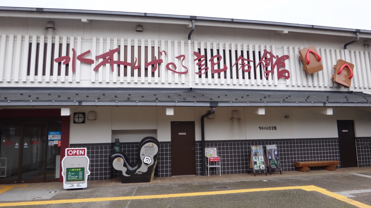 商店街になっていて駅から水木しげる記念館まで歩くと結構ありますが、お店を見たり妖怪たちの置物や絵などを見てぶらぶら歩くとあっという間です。