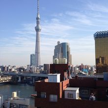 天気が良かったので屋上へ上がってみました。レストランがひとつと 椅子とテーブルというシンプルなものですが、お約束スカイツリーが良く見えます。そして 5人位しか人が居ず…穴場休憩スポットです。