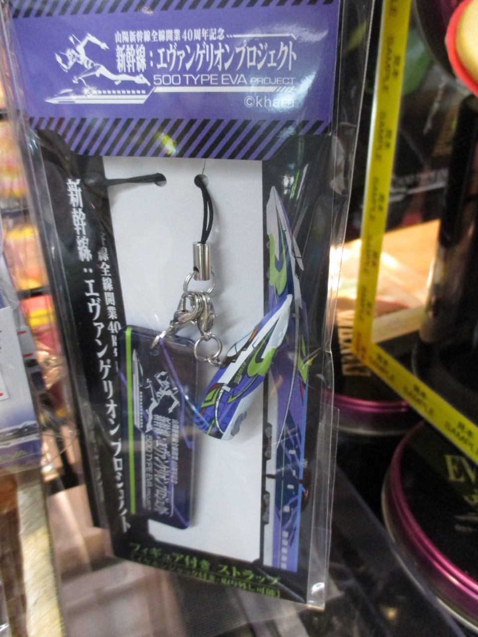店内には「きびだんご」などの岡山名物の品々が並んでいますが、今の時期は、開通した「エヴァンゲリオン新幹線」の停車駅ということもあり、「エヴァフェア」が開催中。