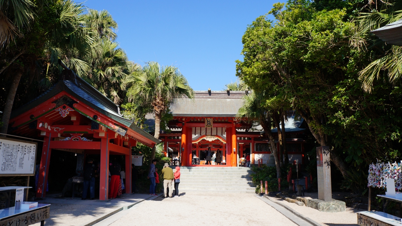 青島の文化財(亜熱帯性植物群落や隆起海床と奇形派蝕痕)を眺めながら、