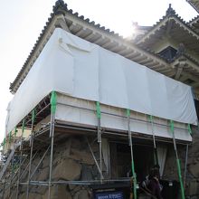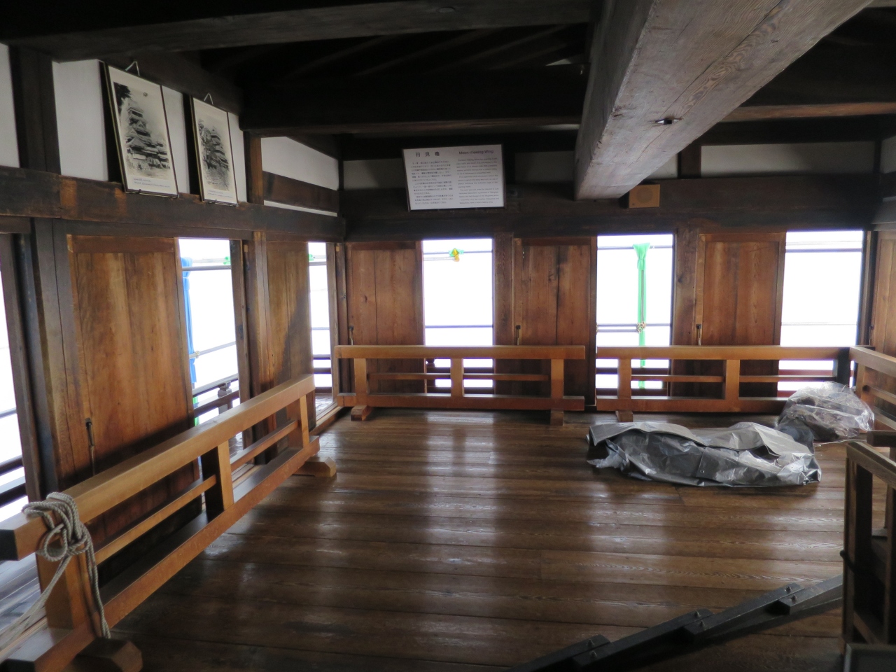 三代将軍家光を迎えるために、平安な寛永年間に増築された櫓です。北、東、南が見渡せ、欄干のついた能舞台の様な建物で、装飾性の高い櫓です。城内見学コースでは一番最後の見所です。行ったときは丁度、修繕中で外側は白いビニールシートで覆われていましたが、内部からは見ることができました。