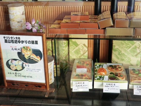 高槻のおみやげには高槻センター街にある和菓子屋さん「井づつ」の代表銘菓『高槻城』がおすすめです。かつてあったとされる高槻城の3重の天守にかけて、あんを三層にしたどら焼き?饅頭?です。表面は高山右近の家紋である「七星紋」になっています。