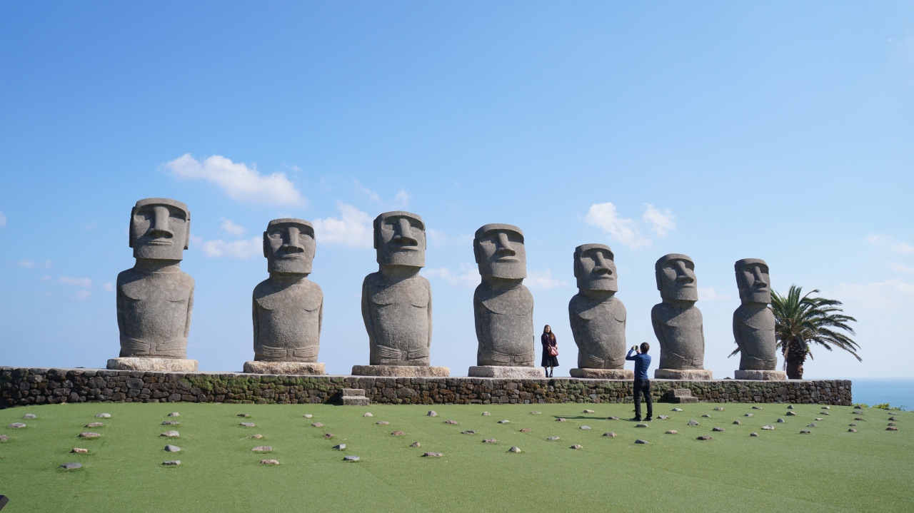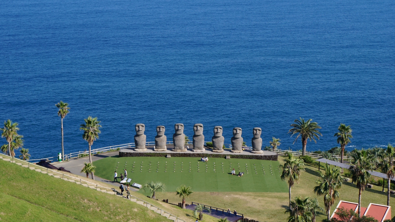 有名なモアイ像が建っている広場までは、駐車場からたいして坂を登ることもなく歩いてすぐに行けます。