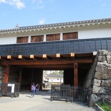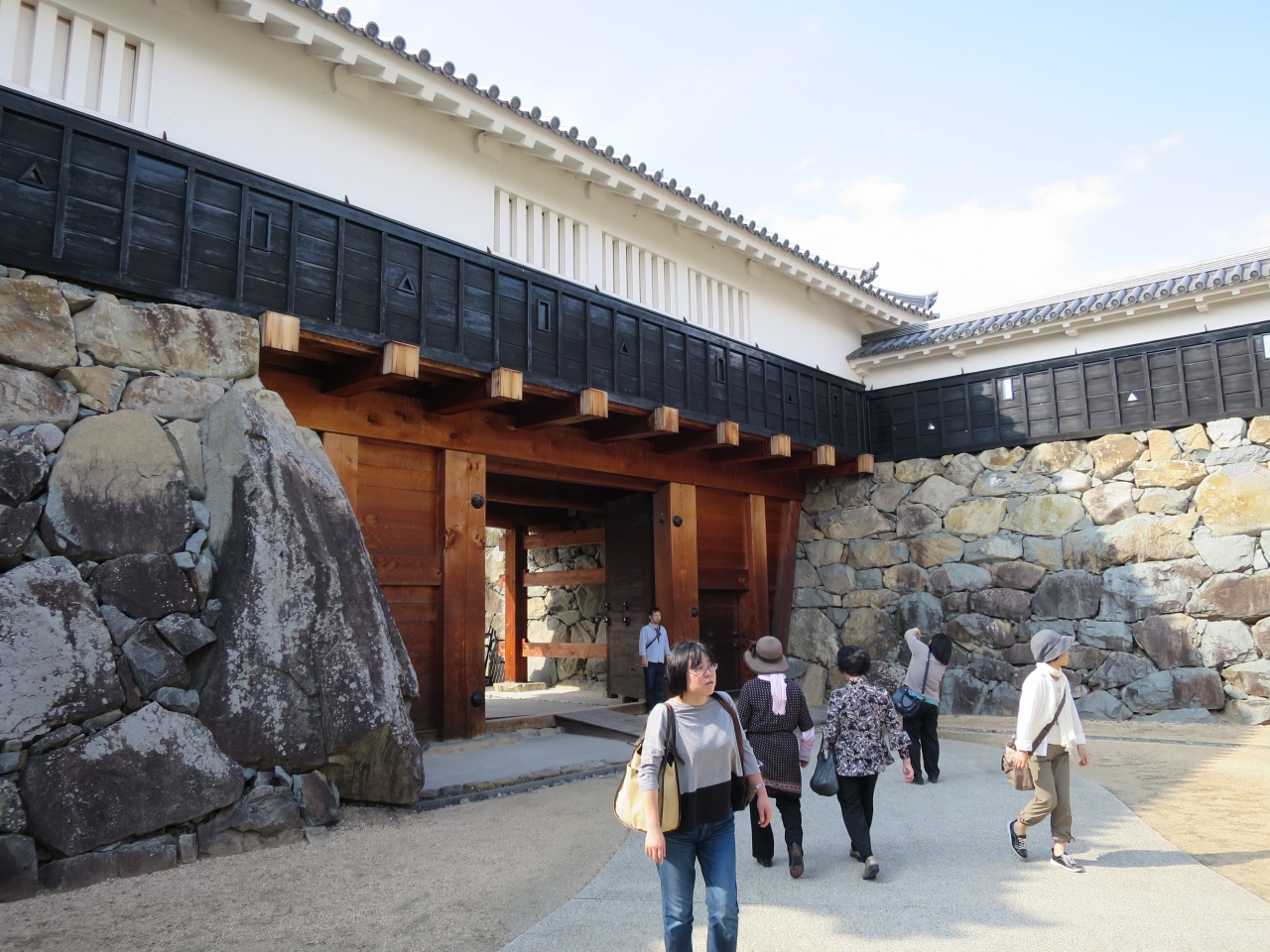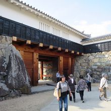 松本城公園の東側、外堀を渡った所に松本城の入口 太鼓門があり、その先が桝形となっています。太鼓門自体は平成11年に再建された櫓門ですが、桝形から見た門の左手の石垣に巨大な石があります。この巨石は玄蕃石と呼ばれ、なんと22.5t出そう。松本城の石垣で一番大きな石ではないでしょうか?