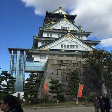 地下鉄で谷町四丁目駅から徒歩で向かいましたが案内板もあって迷わず行くことができました。側面にエレベーターが付いているので現実感はありますが城自体に迫力があり、見応えはありました。
