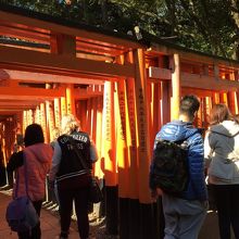 千本鳥居では道も狭くなり、ぎゅうぎゅうになりながら観光しました。ゆっくり観光はできませんでしたが駅からも近いので人は多いものと割り切って観光するのが良いと思います。