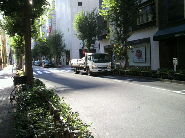 直行する並木通りほどは、広くありませんが、銀座通りと西銀座通りを結ぶ位置にあり、行き交う車も人も多い感じがします。