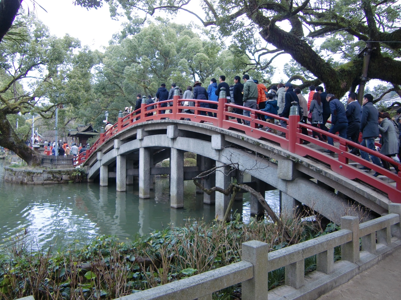 心地池は「心」という字をかたどっていて、太鼓橋を渡る事で、過去・現在・未来の邪念を祓い、身を清めると言われています。