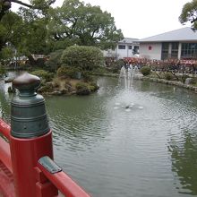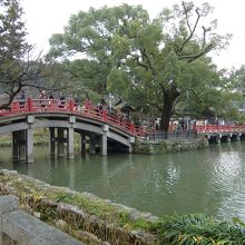 参拝の前の、身が引き締まるような、橋と池の風景でした。