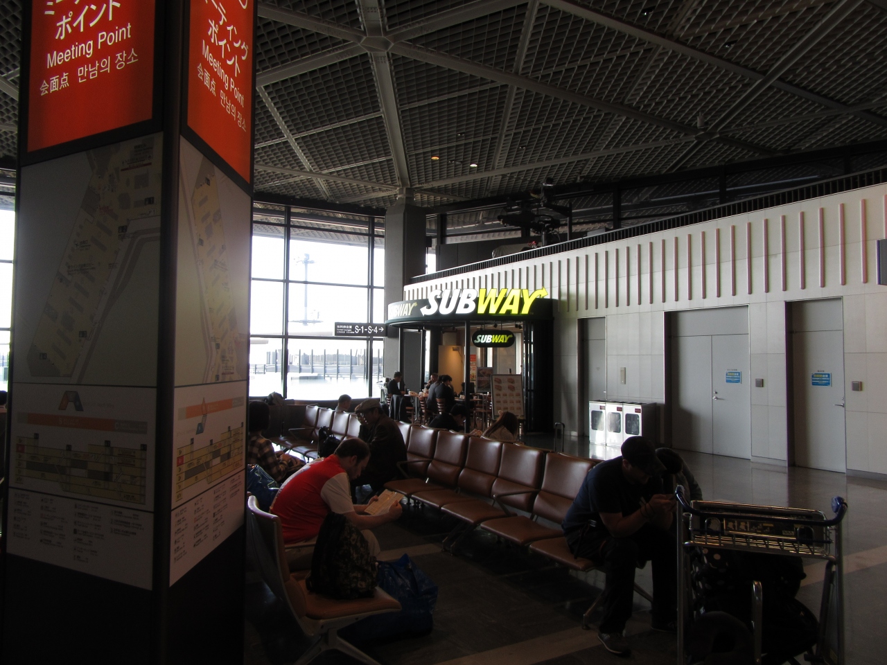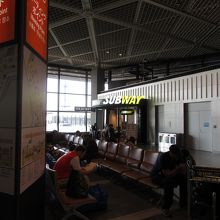 南ウイングの出国審査ゲート近くにあるサブウェイは、レストランなどのモール入り口横の奥まったところに、目の前には外貨両替所や団体のミーティングポイントがある場所です。場所柄比較的空いているので、出国前の軽食、コーヒーブレイクによいお店です。
