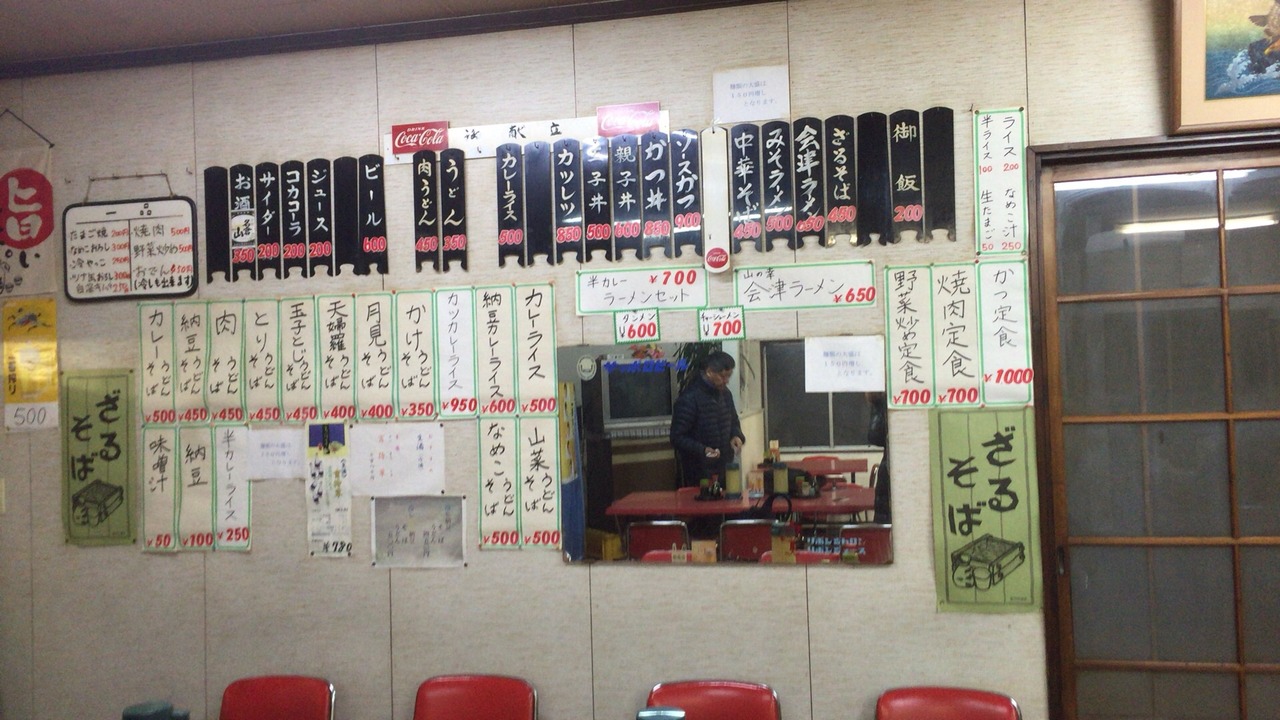 いわゆる食堂。会津若松駅前についた際に、大きな看板に目が行って、あれ?なんか番組てわ見たような気がする。と思い、時間がなかったので、とりあえず行ってみました。カツ丼を食べるまでの時間がなかったので、会津ラーメンと、半カレーを注文。結果、会津ラーメンはチャーシューと山菜そばをミックスしたラーメンで、余り美味しくはない。半カレーは、お代わりしたいくらいの美味しさ。