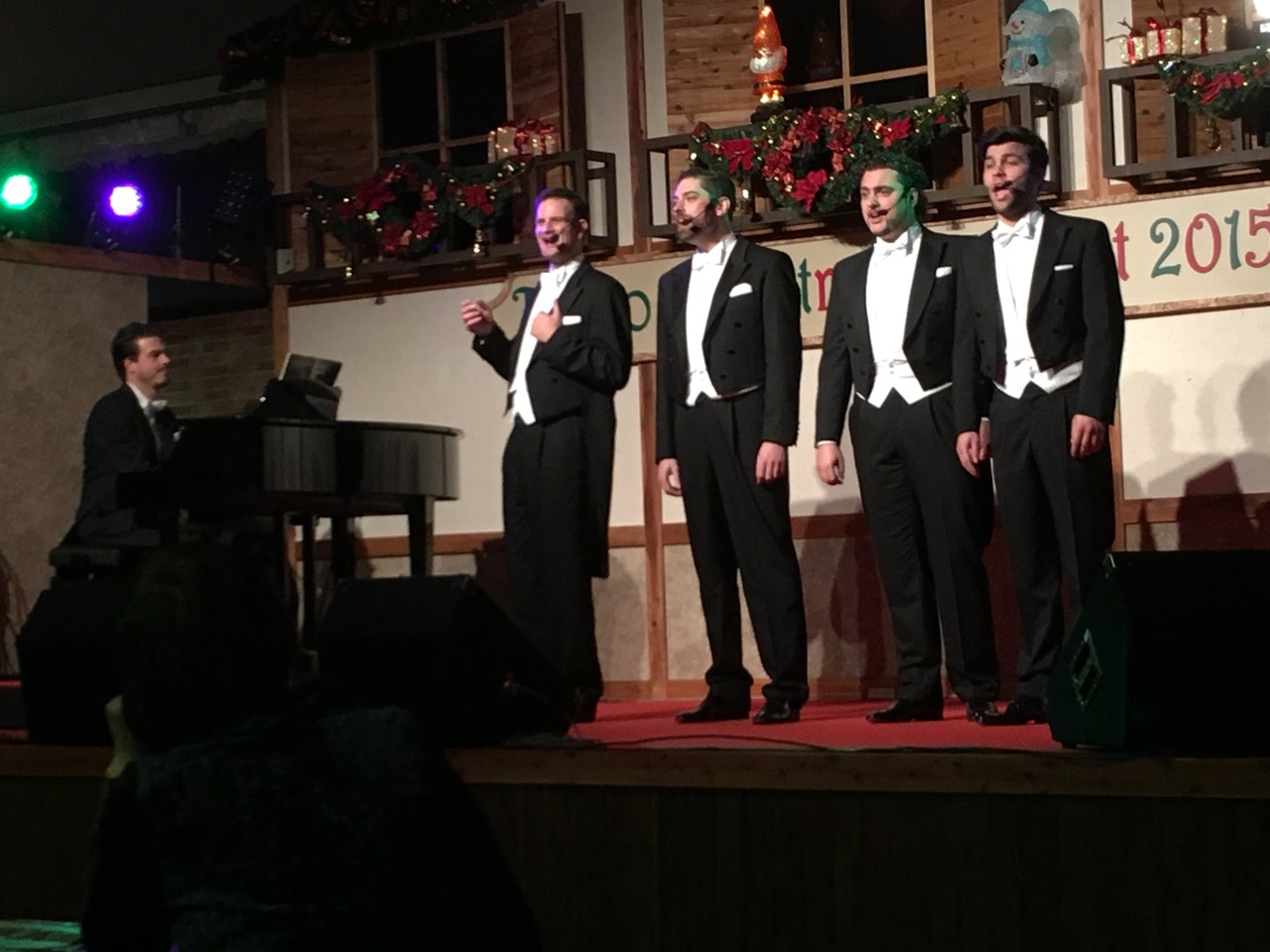 クリスマスマーケットで野外コンサートが開かれていました。2時間おきに演奏者が舞台に立ちます。今回はミュンヘンからの男声合唱団でした。ビニールハウス風で暖かく、食事をしながら見ることが出来て、音も良かったです。