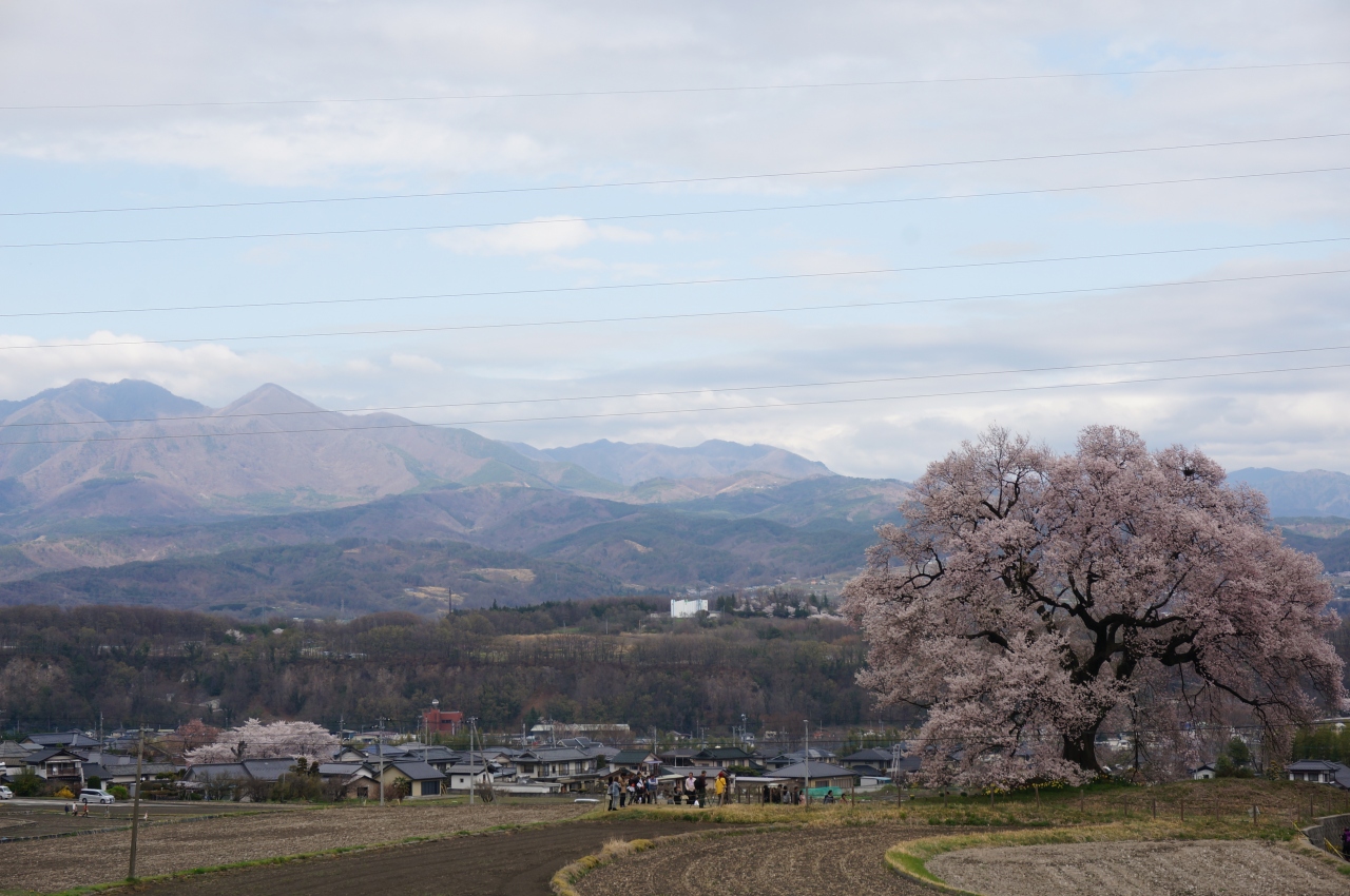 日本武尊の王子・武田王がこの地を治めた後、埋葬された場所なので「王仁塚」と呼ばれるようになったとのことです。小高い丘に樹齢約300年のエドヒガンザクラが見事な花を咲かせます。天気が良いと背景の八ヶ岳、茅ヶ岳とのコントラストが見事です。JR韮崎駅からバス便があります。