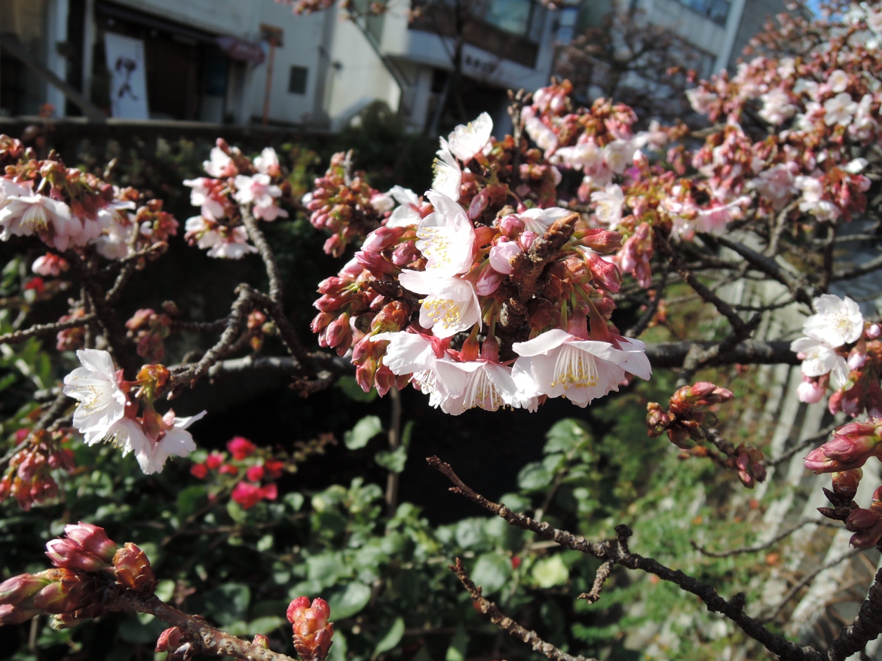 糸川には熱海桜が植えられていますが、既に開花していました(早咲きの桜とのことですが、温暖化の影響もあるのですかね)。少し得した気分です。