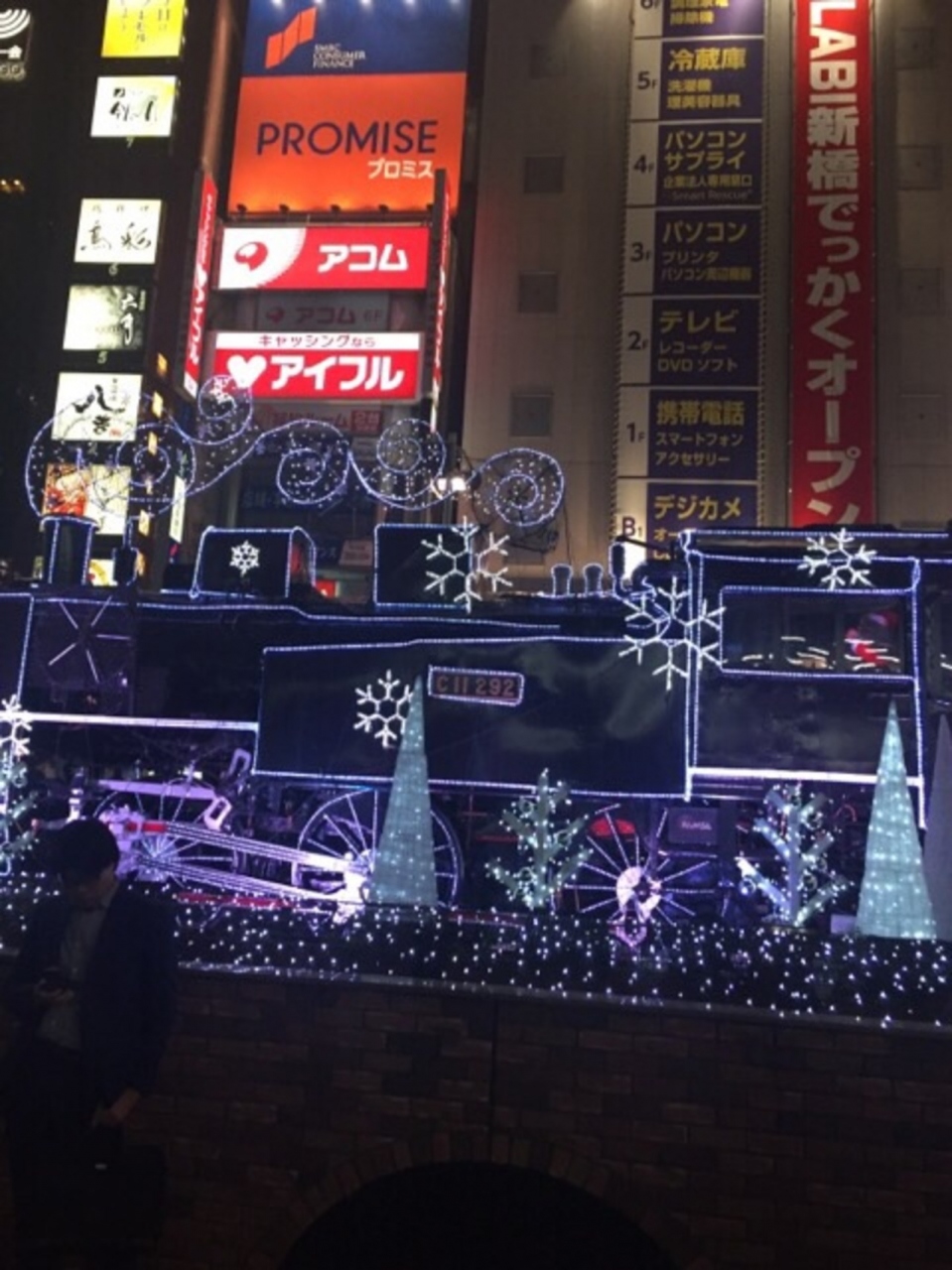 JR新橋駅西口前のSL広場で行われるイルミネーションです。11月12日から1月9日までとなっていて、23時まで点灯しています。LEDを2万5000個使用していますが、若干妙な飾り付けで、新橋に似合わないファンタジックな空間になっています。
