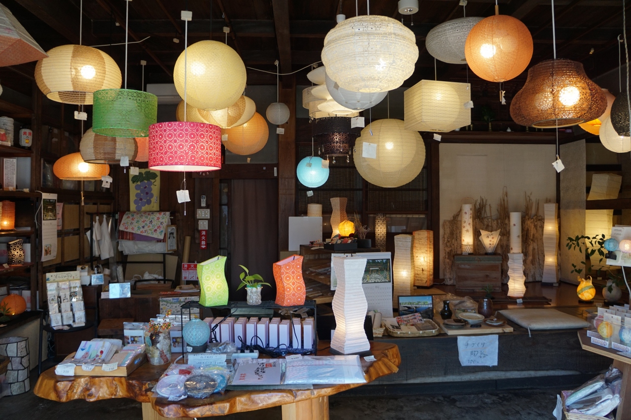 流山あかり館は、和紙で作った照明を展示販売するお店。建物自体も古い町家を利用したものですが、店内にぶら下がった多くの照明もいかにも和の雰囲気。ちょっと提灯にも似ているなあと思ったら、提灯の技術も利用されているのだとか。なるほどという感じです。