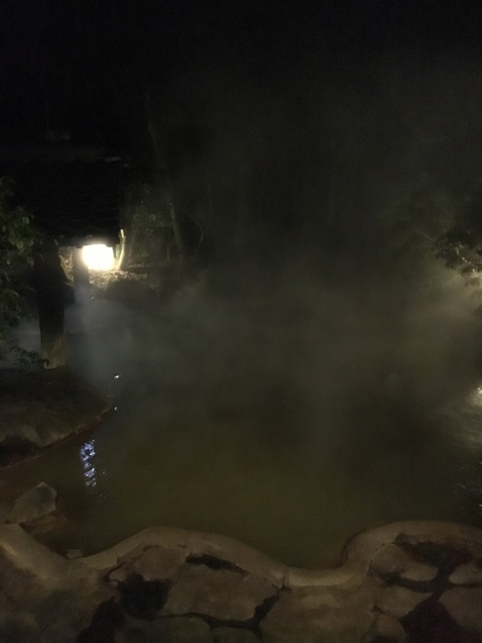 鉄分たっぷりの温泉です。旅館の露天風呂はとても広くて開放感があります。夜に行ったので他に人はいなく貸切状態で使えました。