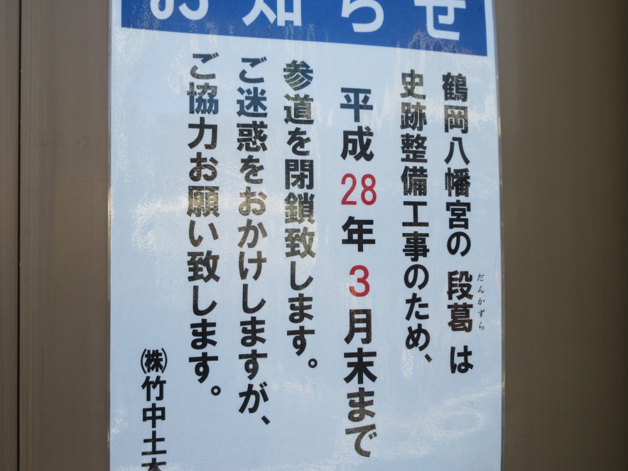 二の鳥居側の道幅が広く、鶴岡八幡宮側が狭くなっているらしく(遠近法になっているとか)