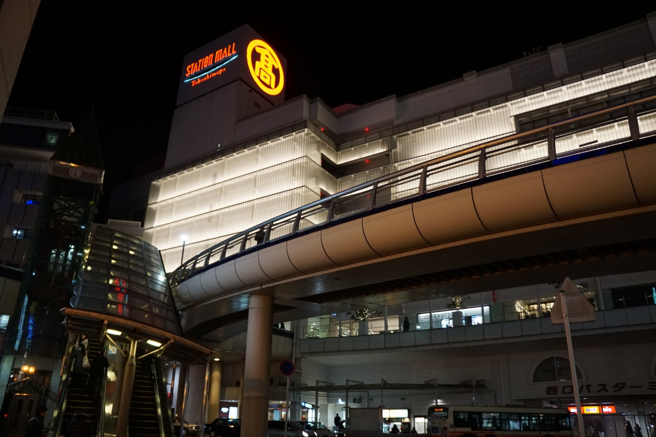 柏タカシマヤは、JR柏駅西口。駅ビルと一体になっているので、雨が降っても何の問題もありません。そして、本館はじめ、高級ブランドショップが入る別館や展望食堂の建物など、一群の建物は城のような感じ。夜の白い電飾も高級感があって豪華です。
