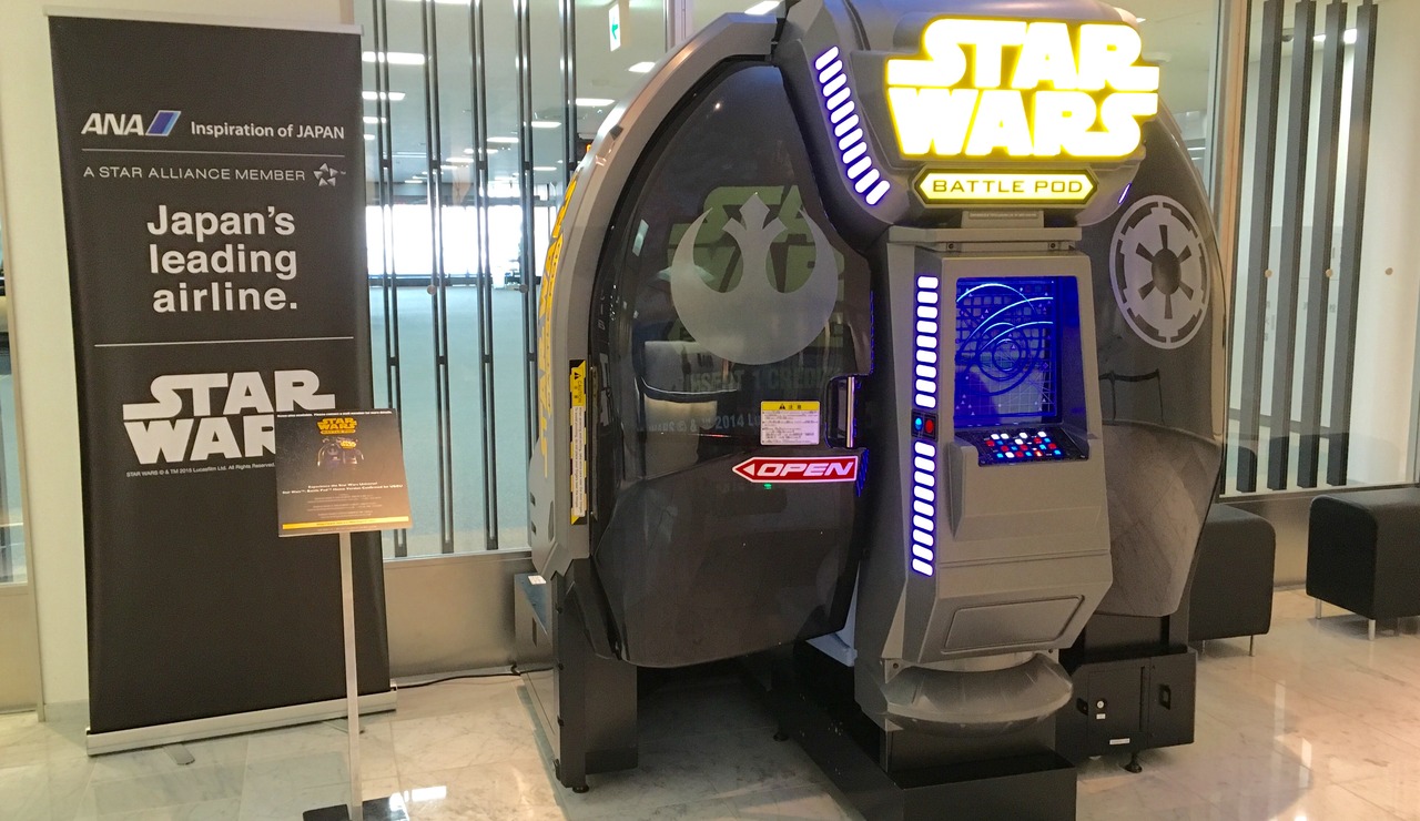 成田空港の47ゲートのそばのANAのラウンジにSTAR WARSの対戦ゲームマシンが置いてありました。