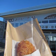 そこで手軽なところで、軽食コーナーでゆりねコロッケをいただきました。