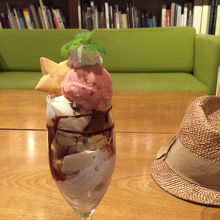既に昼をがっつり食べていたのでお茶だけにしようかと思いましたが、パフェが写真から見ても可愛いかったので誘惑に負けてしまい…