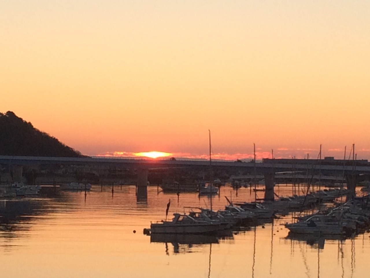ニューイヤー花火が終わった後の初日の出。この時にしか公開されない、特別な日の特別な時間。お笑いのライブなどで盛り上がったひと時、いよいよ初日の出を拝みます。シーパラダイスも、こんなに静かな時間があるのですね。今年も良い一年でありますようにお願いしました。