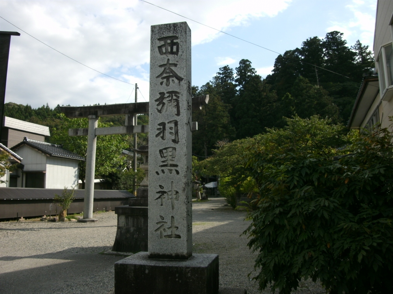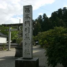 県道に面して境内入口があり、鳥居の横に「西奈彌羽黒神社」と刻まれた立派な石標が立っています。鳥居くぐって参道を進むと神輿殿があり、100mほどの階段を昇っていくと手水舎や本殿、摂社、境内社などの建物が立ち並んでいます。本殿の裏手からは村上市街を一望することができます。