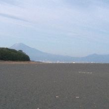砂浜から富士山が見えますが、風景がとてもきれいです。