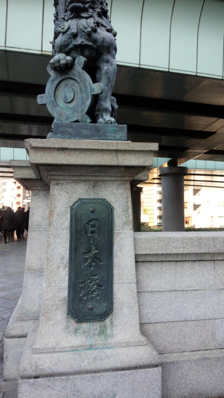 橋自体は江戸時代に始めて架けられたといわれ、この橋の中央が国道の起点になっている重要な橋で、橋自体も大きくて立派だし、四方に広場もあって、休憩したりランチをとったりしても楽しそうなのですが、すぐ上を走っている首都高がほんとに景観の面でほんとに邪魔です。