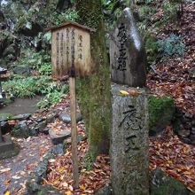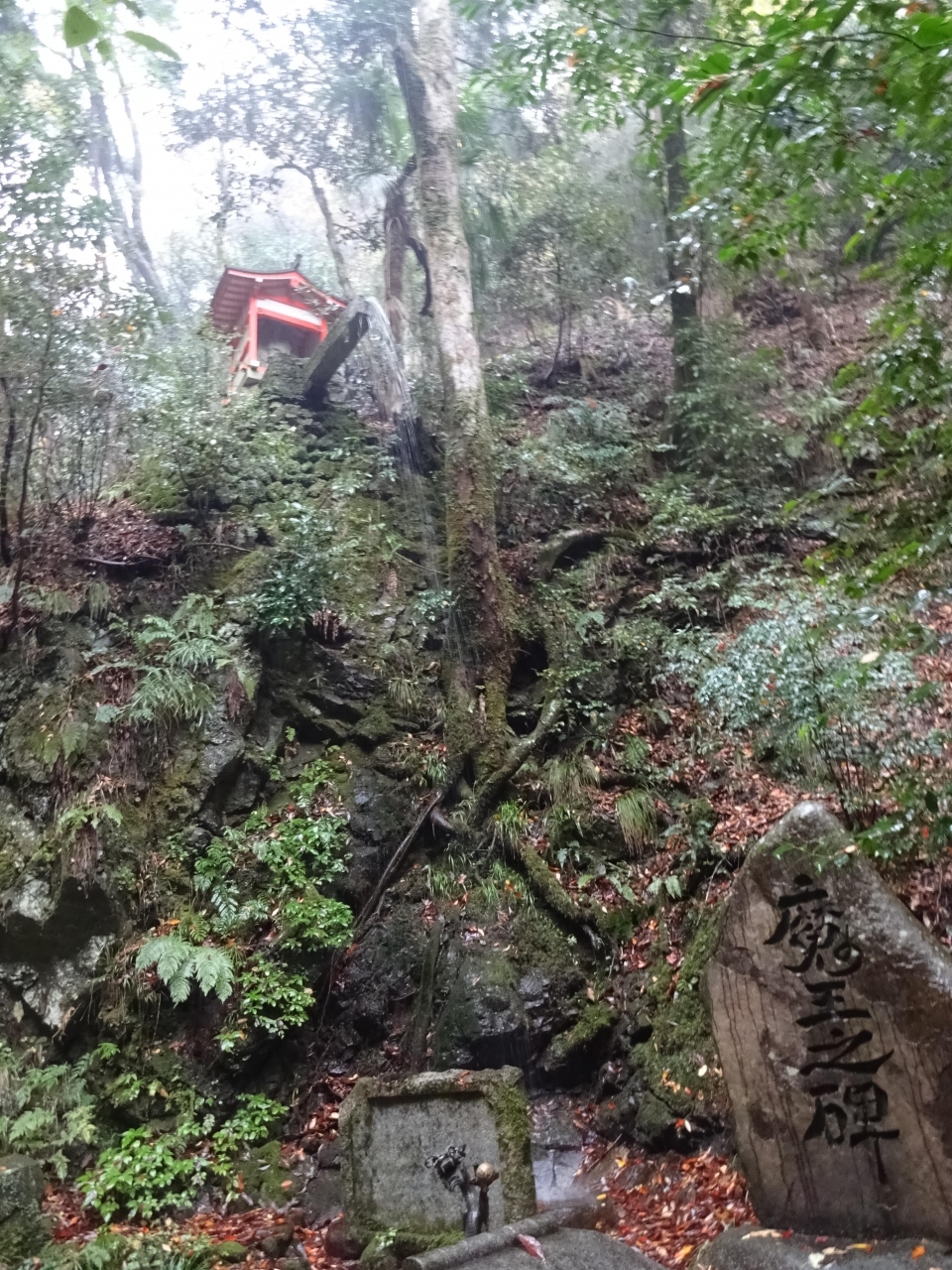 立て札には「崖の上には御法魔王尊をお祀りしてあります。近寄らないで下さい」と書かれていた。