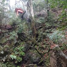 その池の崖上のようなところを見上げると、細く水が流れてきていた。