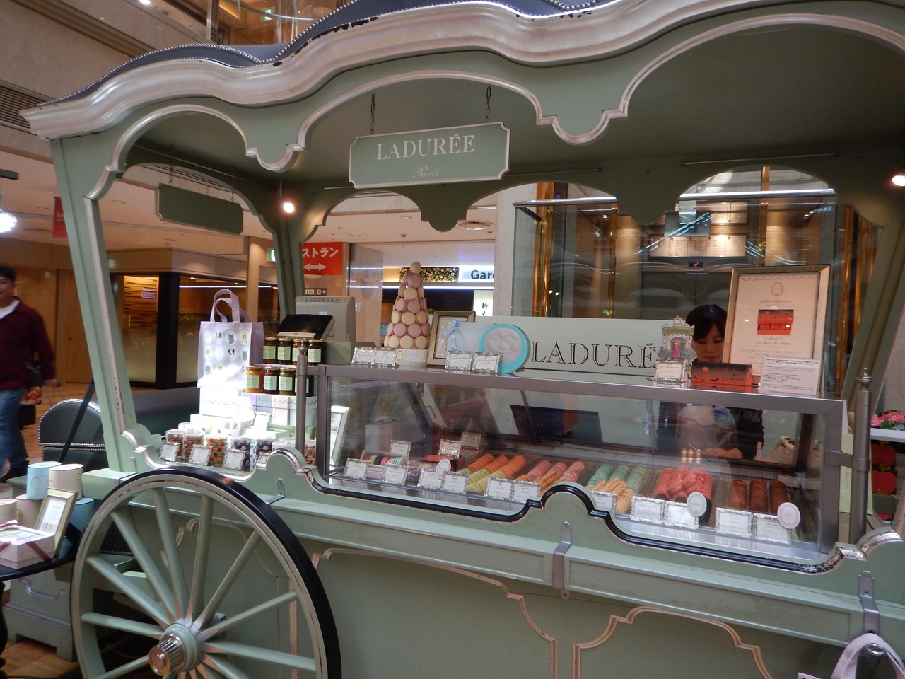 羽田空港国内線 第一ターミナル 2階のマーケットプレイスの真ん中に、ラジュレのワゴンがありました。パステルカラーのとても可愛らしいワゴンで、マカロンも色とりどりで美味しそうだったのですが、一個300円ぐらいするというのを聞いてあきらめてしまいました。このマカロンの価値のわからない家族へのお土産には、高すぎると思いました。