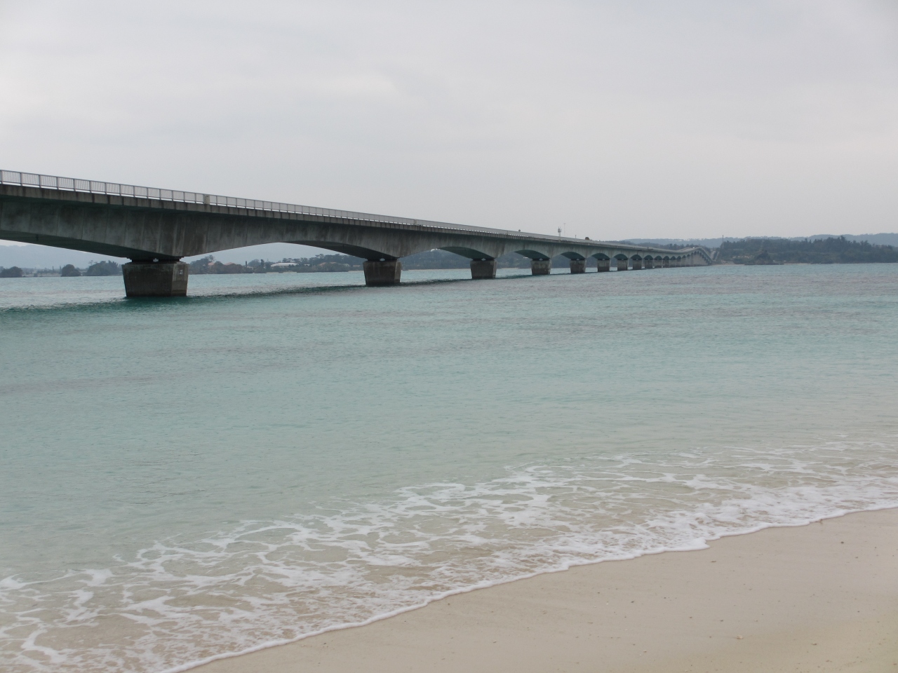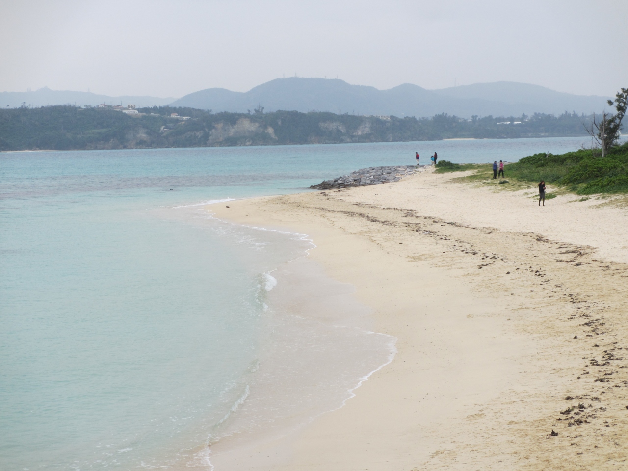 本部半島に浮かぶ一周8kmほどの小さな島です。サトウキビ畑が広がるのどかな島です。島の周りに広がる沖縄らしい緑色の海と白い砂浜は多くの人をひきつけ、夏の海水浴シーズンは大変な賑わいになります。訪れた日は曇っていて太陽が出ていませんでしたが、それでも美しいエメラルド色の海を見ることができました。太陽が出ていたらどんなに美しかったことでしょう。