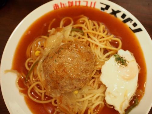 ハンバーグがのったあんかけスパ