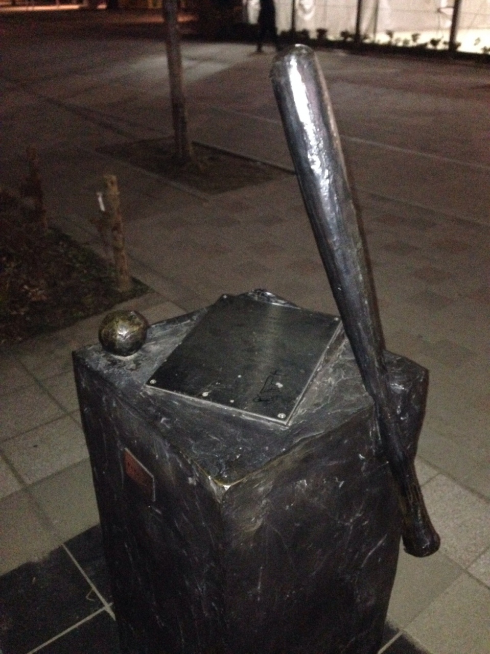 テニスやプール、野球場もあります。この野球場の入口に 王貞治さんの言葉が刻まれた碑がありました。バットが刺さったような独特な形で目立ちます。