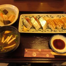 鯖握りと穴子寿司 焚き合わせ赤出汁付