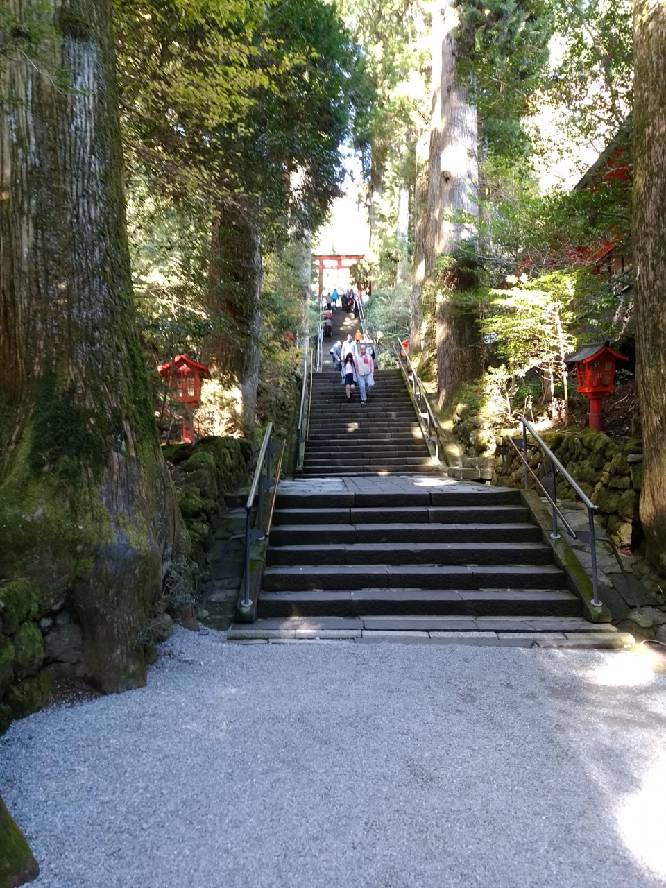 駐車場からまずは鳥居の方へ向かうと、杉の太さとその先の階段の高さにびっくり。。。