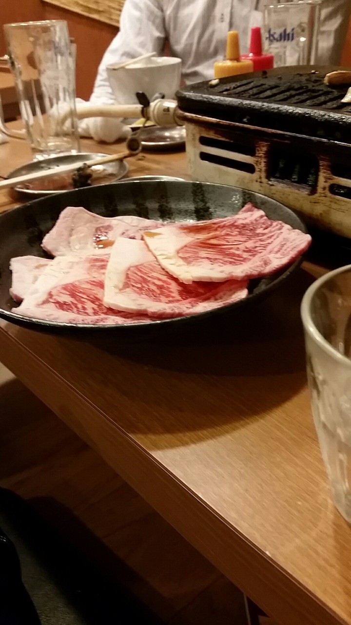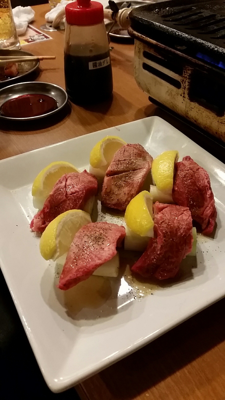 ということで、やはり悪い評価かなと思いましたが、焼肉のコースと飲み放題2時間で5500円/人で、超リーズナブル。最初に出てきた塩タンは肉厚があって食べごたえあり。基本は牛ですが、最後の方には鳥やホルモンなどが出てきて、ごはんも大・中・小でリクエストできます。男子でも十分満腹になります。