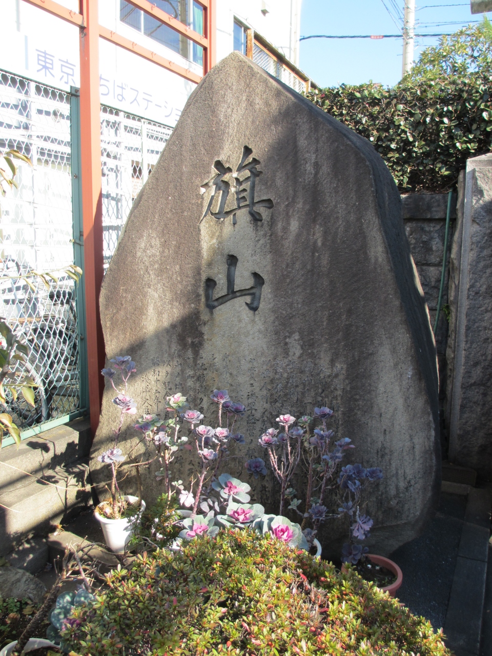 都営大江戸線築地市場駅、東京メトロ築地駅から徒歩2分です。時司中央卸売市場内の魚河岸水神社の手前にあります。1872年に築地市場一帯に海軍省が置かれ、海軍卿の旗が掲揚されたため旗山と呼ばれました。築地周辺には海軍大学校、海軍軍医学校、海軍経理学校などの施設があり碑が周辺にあります。