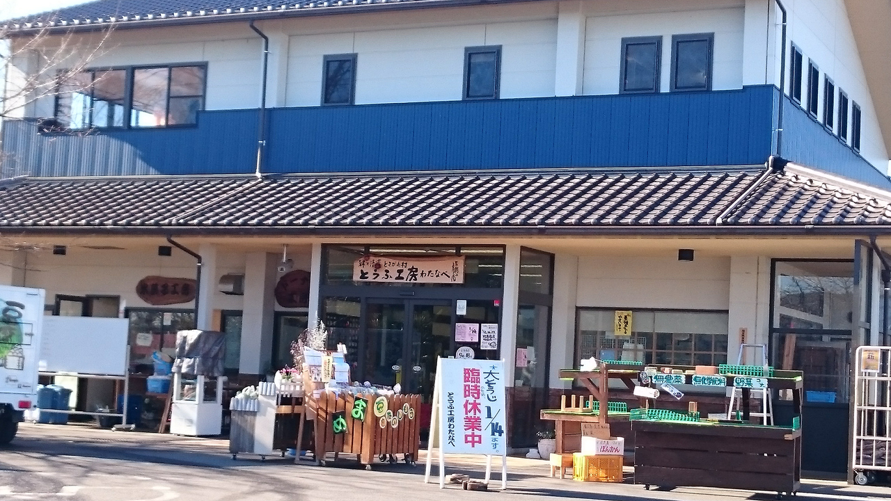 駐車場のスペースが広くなってます。いわゆるお豆腐屋さんです。お豆腐はこしがあり、お箸でつかんでも崩れないたくましさがあります。お値段も少々高めです。遊びに行った帰りに買うので、今回もそのつもりで行ったら、なんとお休みでした。